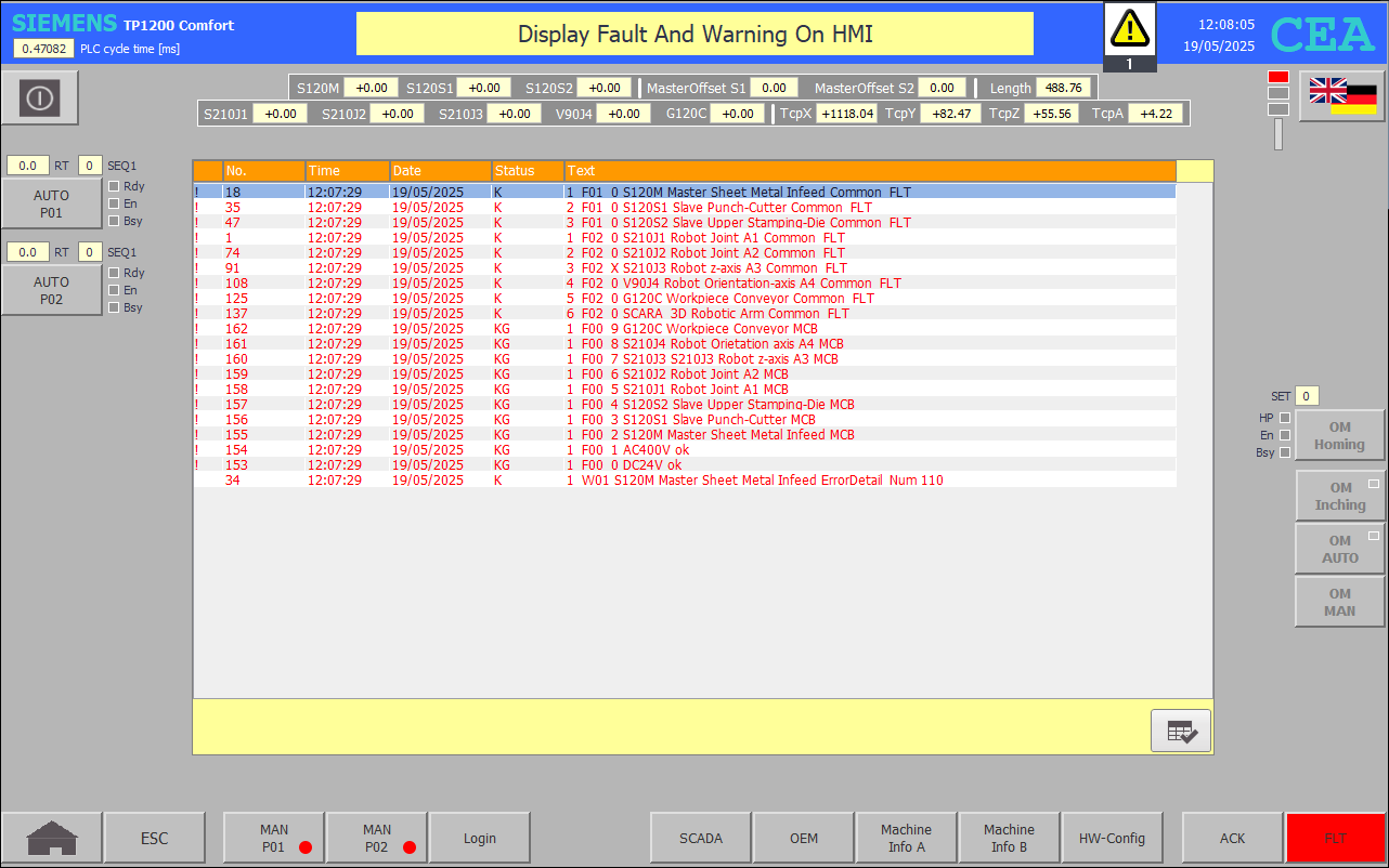 | FB37 FLT P01 : Fault and warning |