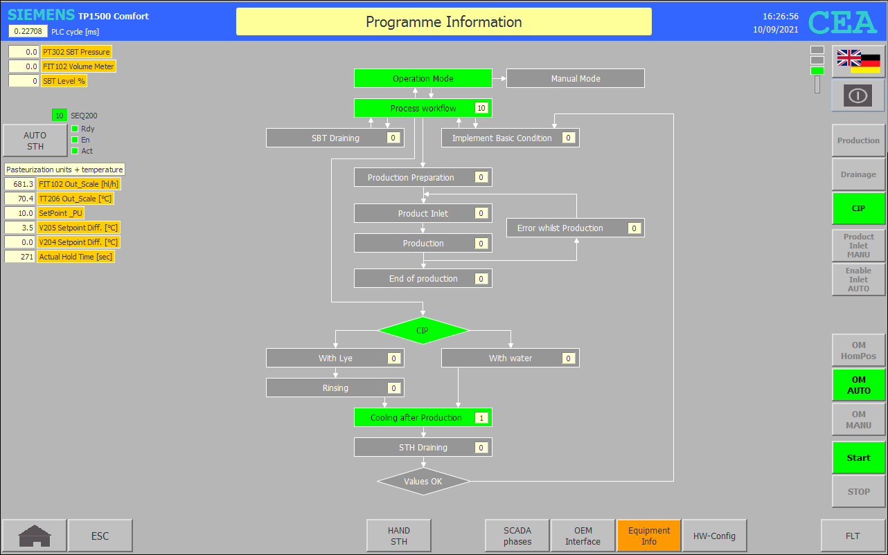 IF "DI OUT P02".V205.Output > 10.5 AND "DI OUT P02".V204.Output < 5.0 AND #SSM.S.stepllo THEN "DI MAIN GLB".SEQ200.Support.CIP_Cooling_after_Production_Complete := TRUE; "DI MAIN GLB".SEQ200.Support.SEQ243_Start := FALSE; END_IF; END_CASE; |